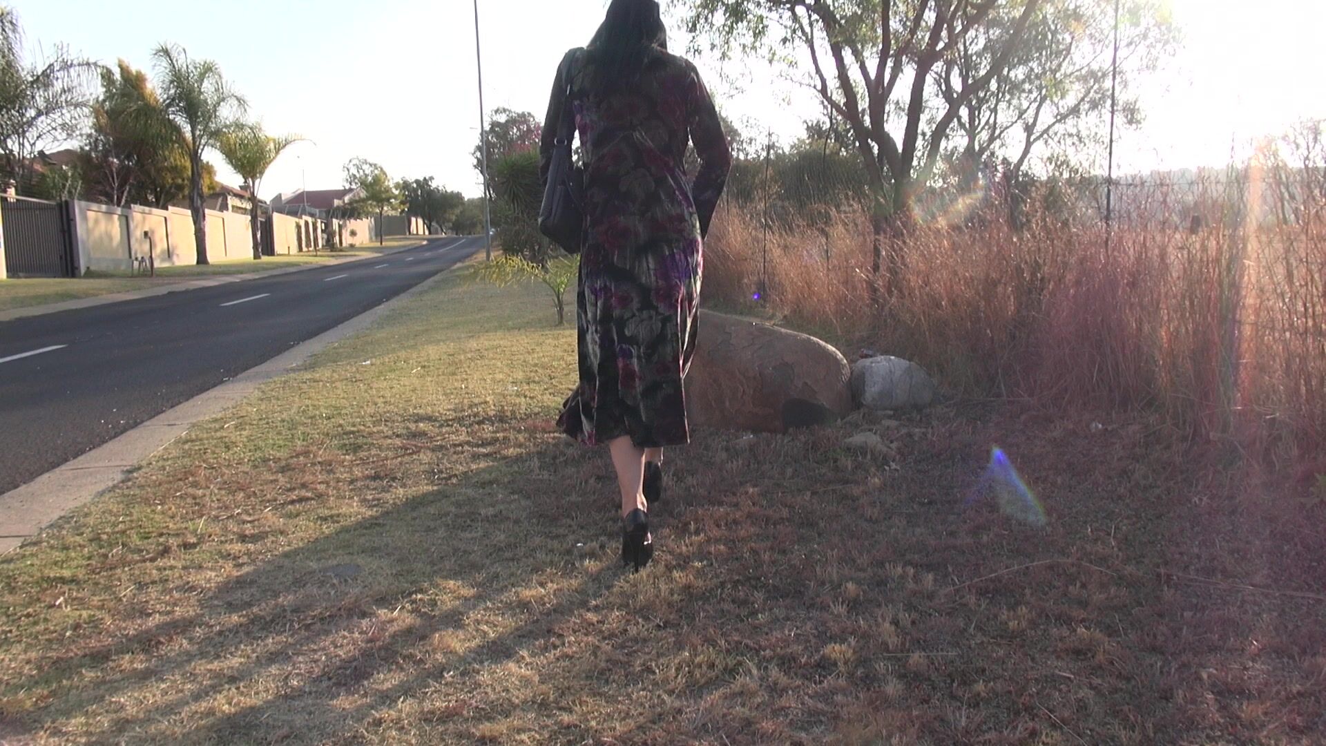 Angie having some fun with her pussy on the roadside in the suburb